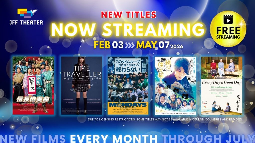 Witness the current lineup of amazing selected films by making an account on our streaming platform “JFF THEATER”. Enjoy Japanese films for FREE, anytime and anywhere, with English, Malay and Chinese subtitles! Register now to watch 5 newly added films starting from 3 February.