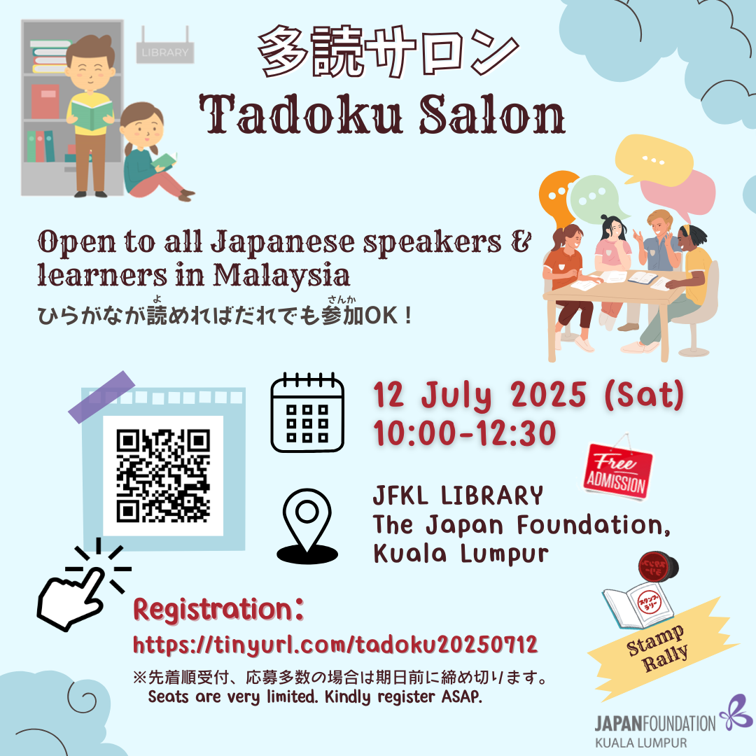 The JFKL Tadoku Salon is back! ๐Ÿ“… Date: 12 July 2025 (Saturday) ๐Ÿ•™ Time: 10:00am-12:30pm ๐Ÿ“ Venue: JFKL Library This event is open to all...