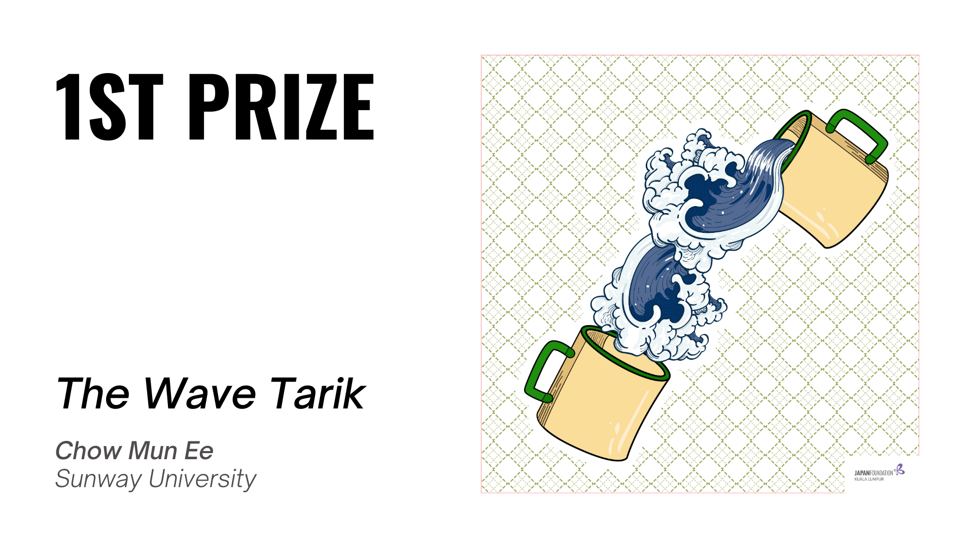 A clever piece of artwork that ‘fuse’ The Wave pattern into the process of making “Teh Tarik”, both uniquely Japanese and Malaysian. Other cultural design elements has been incorporated in the Furoshiki so effortlessly. A unique and contemporary take on Furoshiki design.