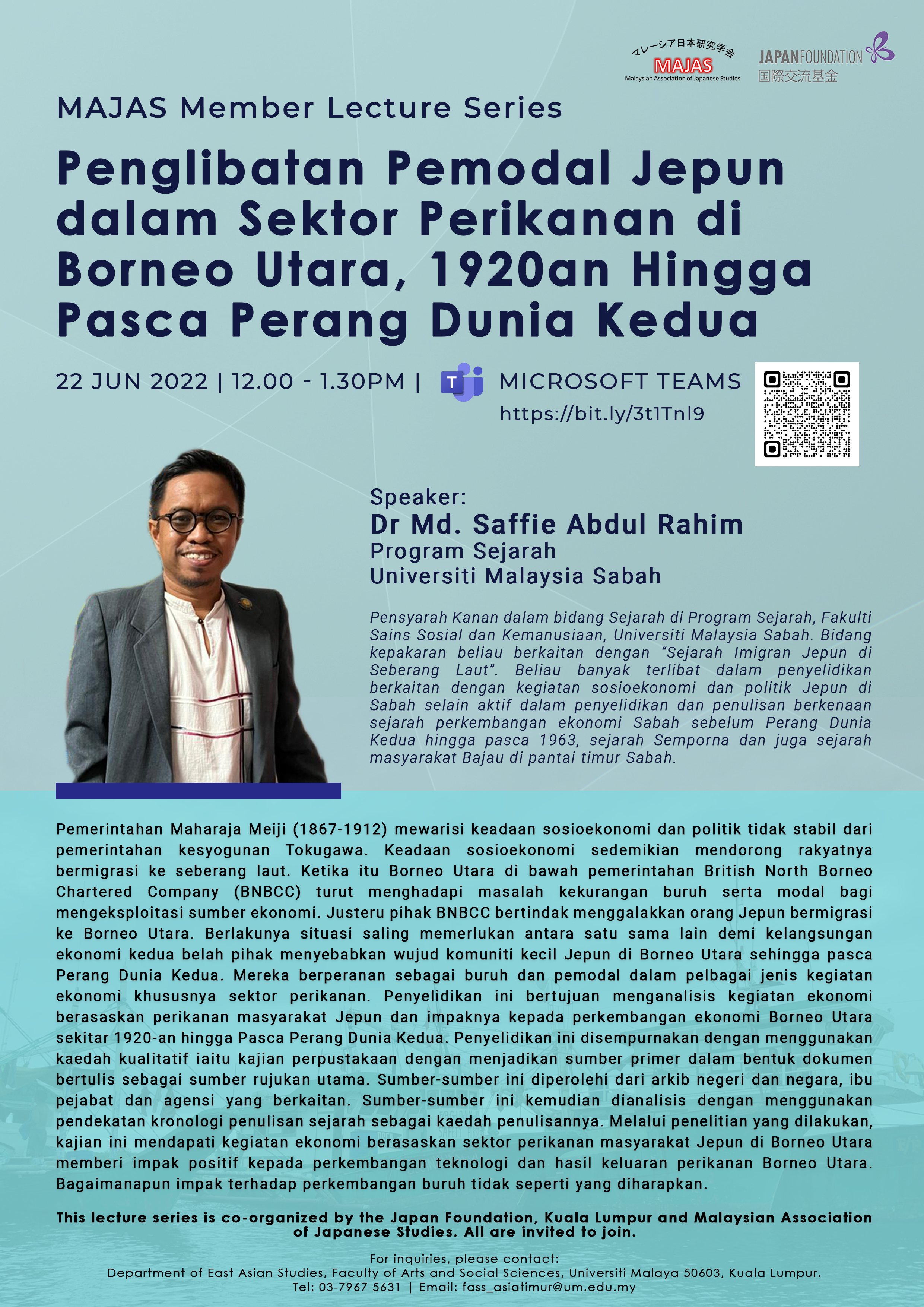 MAJAS Member Lecture Series in June 2022