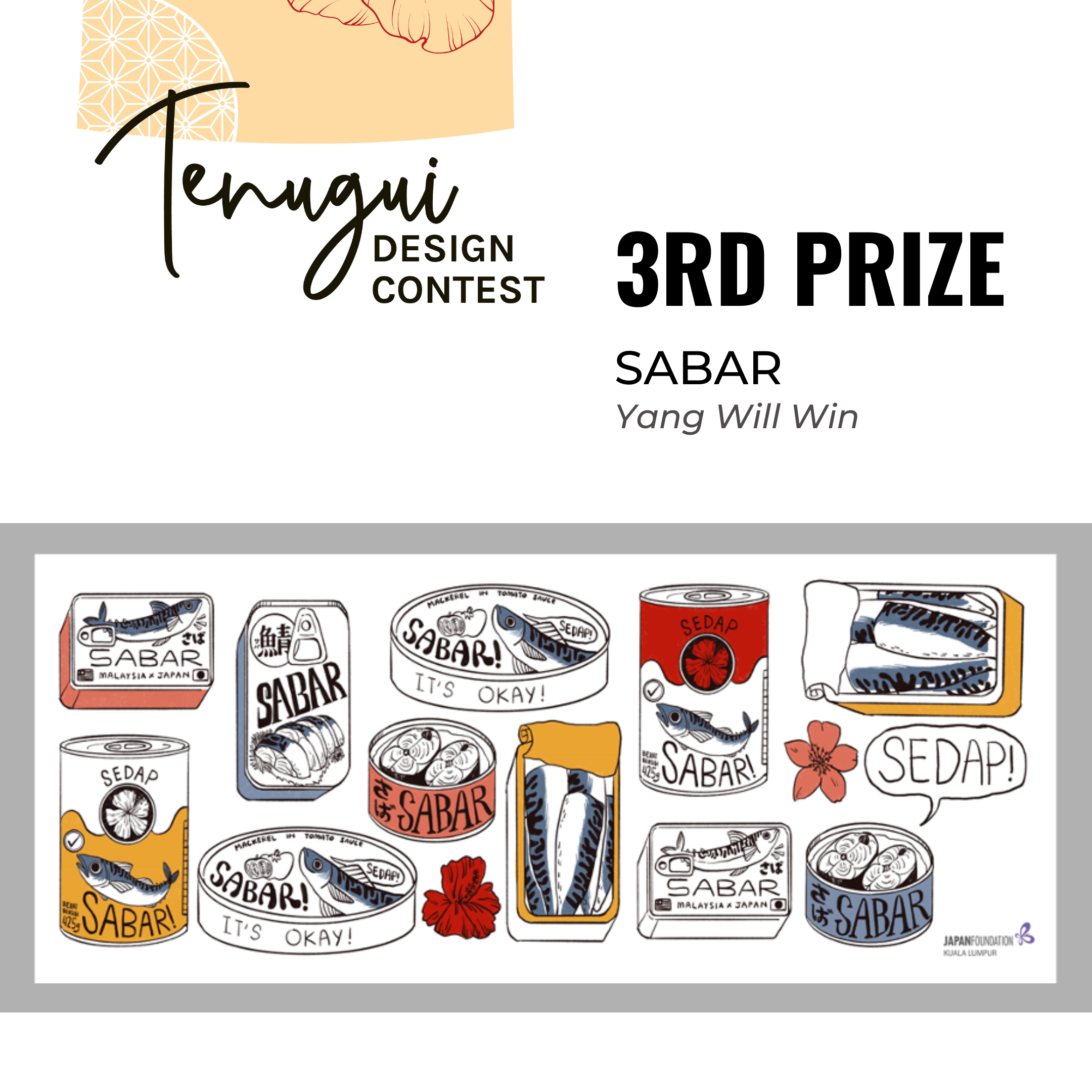 It’s the design story that made this artwork very interesting! Yang Will has touched vernacular design approach on the way a language is spoken and taught audiences something new to be related between Malaysian and Japanese words. Sabar has the deisgn element of a matured artwork and can symbolically patterened tenugui well with both identity of the great nations.