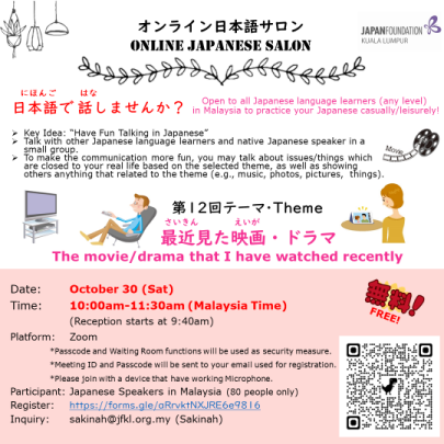 Participant: Japanese Speakers in Malaysia, limited to 80 persons only