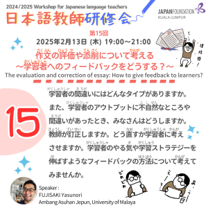 講師:武井康次郎(JF日本語上級専門家・マラヤ大学予備教育部日本留学特別コース)