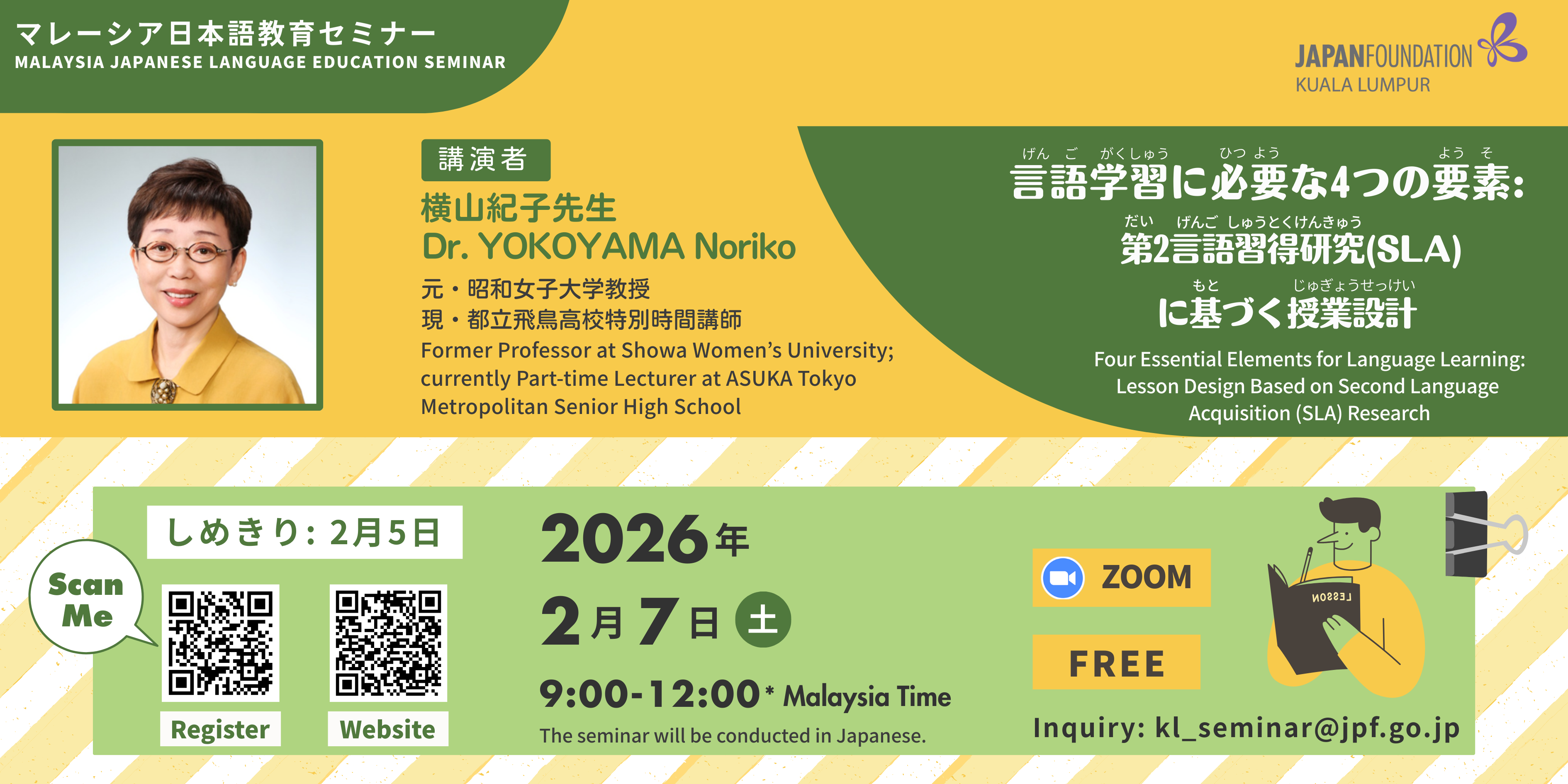 | 日時 | 2026年2月7日(土)09:00-12:00(マレーシア時間) |