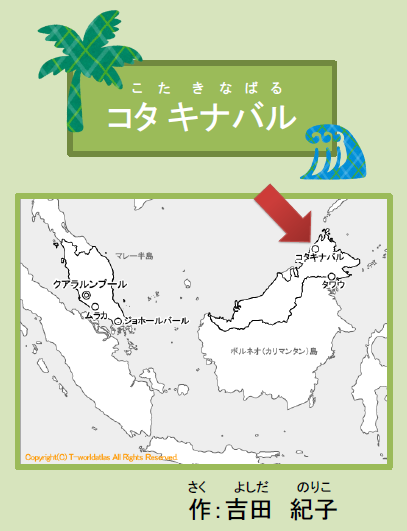 『コタキナバル』 Level 0 クアラルンプール日本人会で教えていらっしゃる吉田紀子先生の作品。コタキナバルに行った時の旅行記です。 |