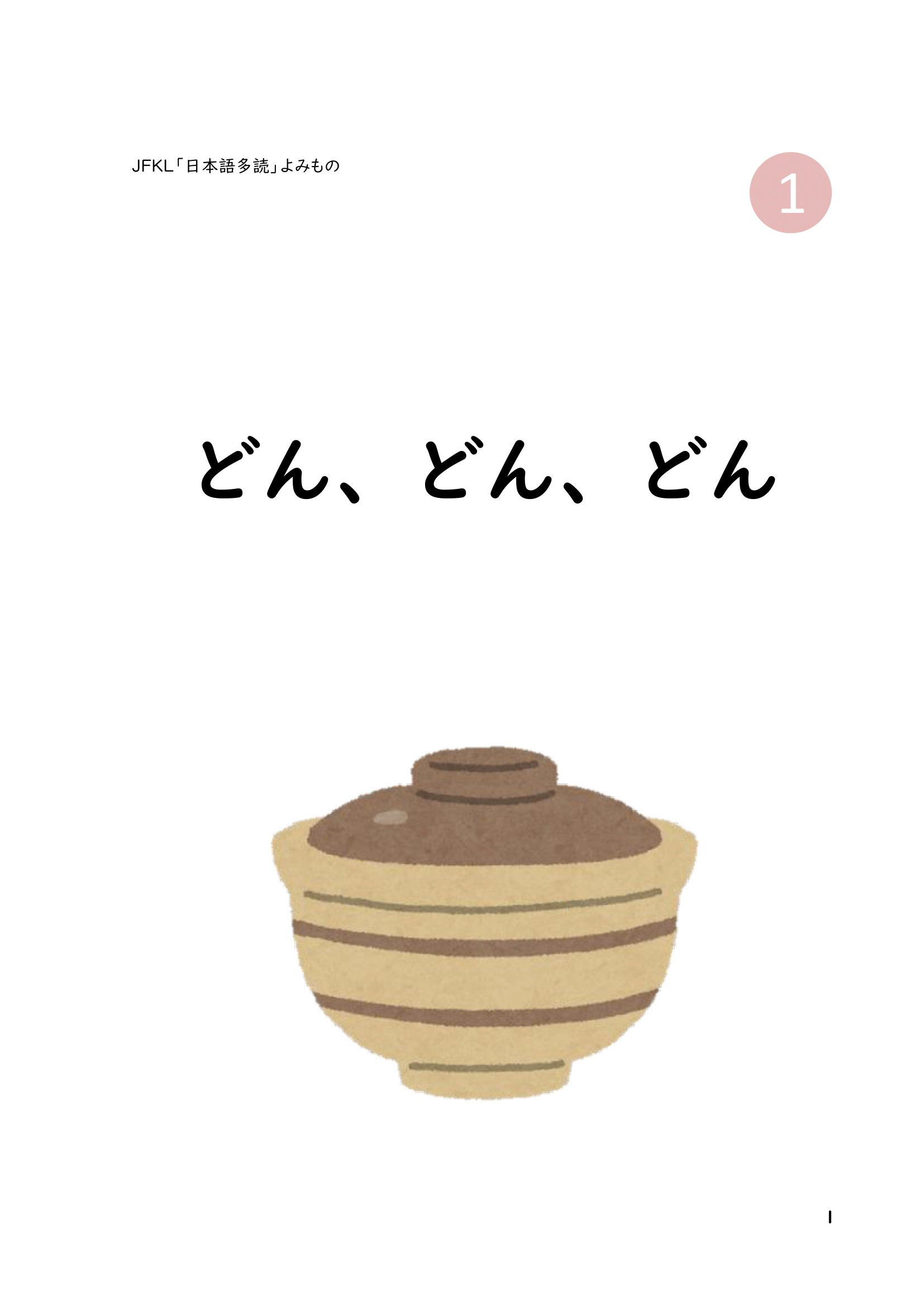 『どんどんどん』 Level 1 JFKL作品第3弾! 「どんぶり」って知っていますか?「丼どんぶり」について読よんでみましょう! |