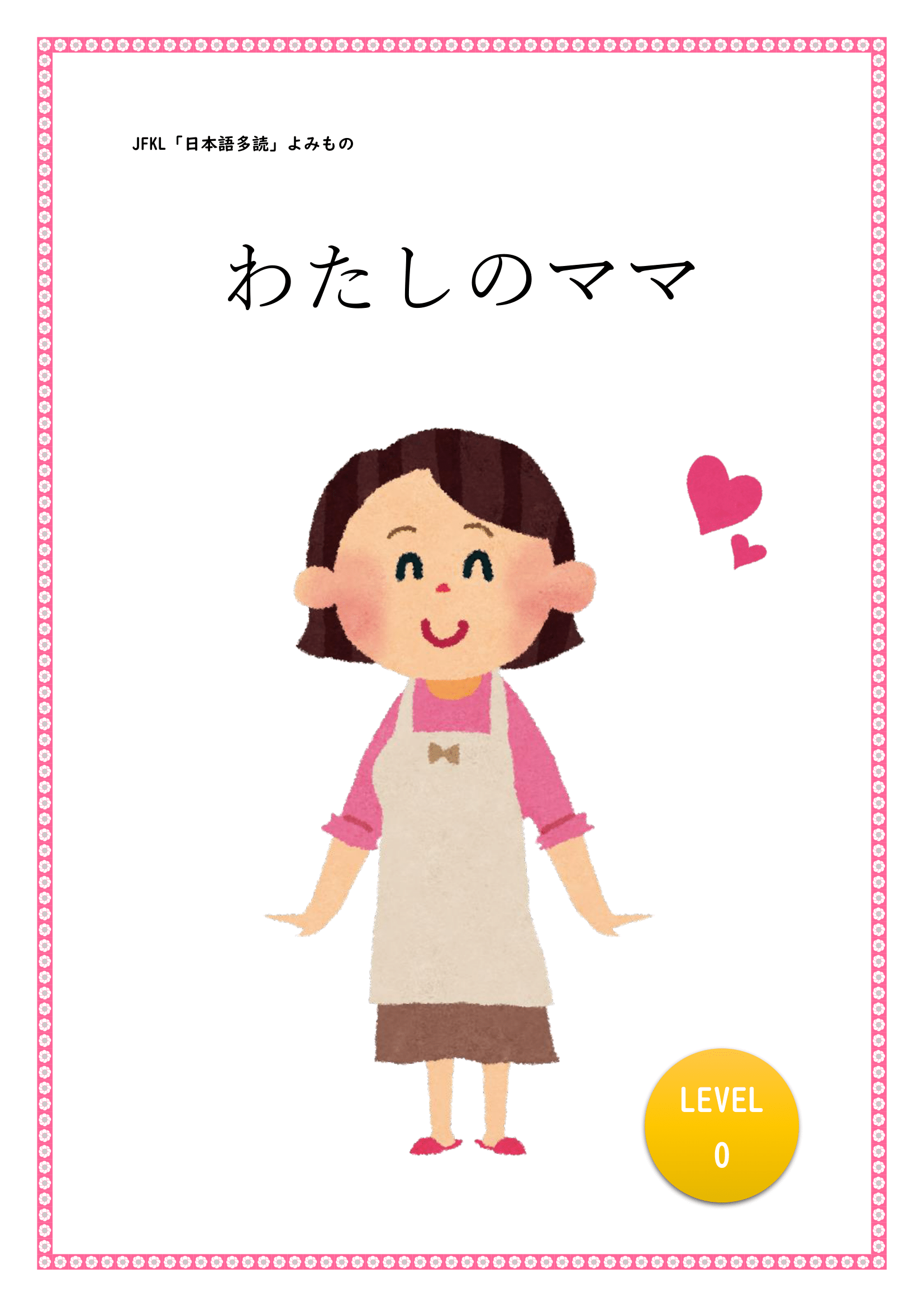 | 『わたしのママ』 Level 0 朗読:チャン JFKL作品第2弾! 全世界ぜんせかいのお母かあさんへ感謝かんしゃの気持きもちを伝つたえるために生うまれた作品さくひんです。 |